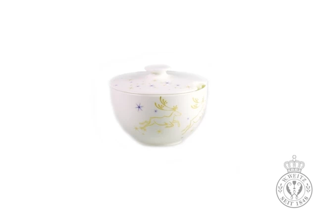Die runde Zuckerdose aus der dekorierten Dibbern Weihnachtsgeschirr Serie Fine Bone China Christmas