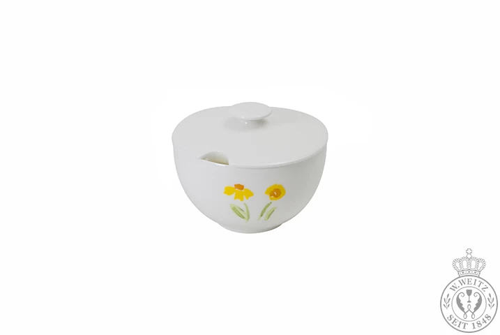 Die runde Zuckerdose aus der dekorierten Dibbern Geschirr Serie Fine Bone China Impression Blume gelb