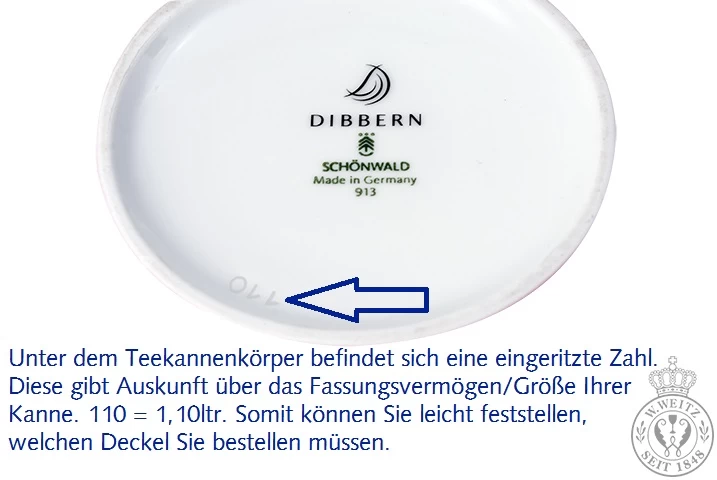 Ihnen ist der Solid Color pearl Teekannendeckel zu Bruch gegangen? Kein Problem – diesen können Sie auch einzeln bei uns nachbestellen. Die Lieferzeit für Deckel beträgt ca. 14 Werktage. Die nachbestellten Deckel für die Dibbern Teekannen passen nie so gut wie ein Originaldeckel. Kanne und Deckel werden bei der Herstellung zusammen im Ofen gebrannt und verlieren dabei Flüssigkeit und Volumen – und dieser Volumenverlust variiert. Deshalb kann es sein, dass der nachbestellte Deckel nicht so fest sitzt, wie der eigentliche Deckel.