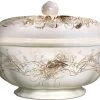 Eine neue Farbvariante präsentiert Gien mit der Keramikserie Filet taupe, denn sie ist in Form und Design dem Filet bleu Service nachempfunden. Auch hierbei bewegt sich eine handbemalte Linie – dieses Mal in zartem Taubenblau-grau – über die ecrufarbene Keramik in Muschelform. Das moderne und unaufdringliche Service passt beispielsweise auch sehr schön zur naturalistischen Edition Sologne. Die passende Untertasse zur US Teetasse aus der Gien Filet taupe Kollektion. Die Untertasse fühlt sich am wohlsten mit der dazugehörigen Teetasse.