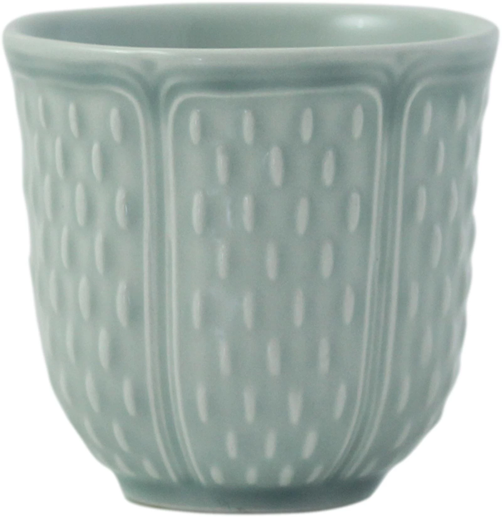 Der Gien Pont aux Choux Espressobecher Vert Celadon ist einfarbig grau und mit einem Reiskorn-Dessin versehen. Er besteht aus Keramik und ist perfekt für Ihr kleines schwarzes Heißgetränk am Morgen oder auch zum Abschluss eines leckeren Dinners am Abend.