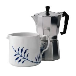 Der kleine Royal Copenhagen Mega Blau Gerippt Krug neu interpretiert – die Form ist ohne Rundungen und verläuft zylindrisch. Der Krug oder das Kännchen fasst 0,70 Liter und lässt sich wunderbar als Milchkännchen oder Kaffeekanne nutzen.