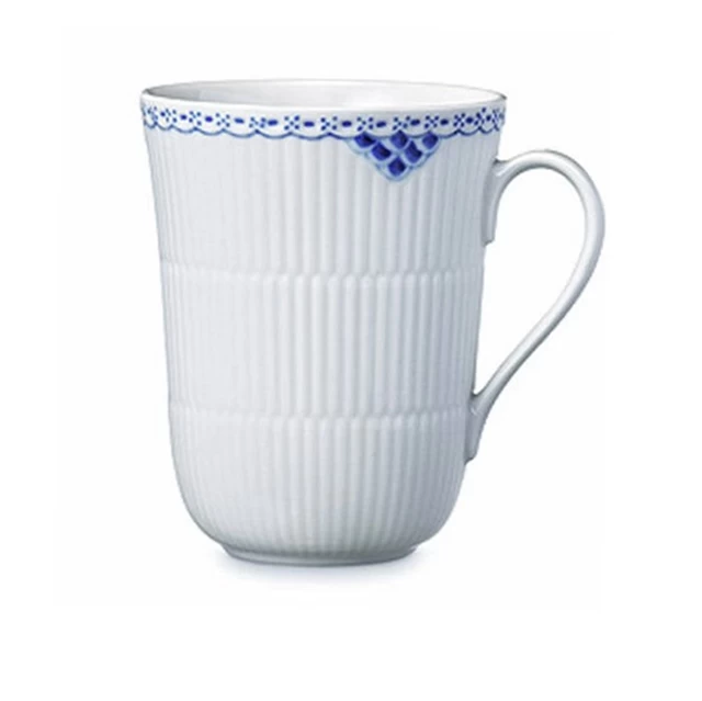 Wahrhaft königlich: Arnold Krog entwarf die Royal Copenhagen Prinzess / Princess Serie in den 1880er Jahren als Tee-Service – erst 1978 wurde daraus auch ein Ess-Service. Die Prinzess Kollektion ziert eine romantische Spitzenbordüre mit blauen Miesmuscheln. Mehr Inhalt, mehr Genuss: Für alle, die nicht genug von Kaffee, Tee, Kakao oder heißer Milch bekommen können, sind diese Henkelbecher der Royal Copenhagen Prinzess Serie genau das Richtige – sie fassen nämlich 0,33 Liter.